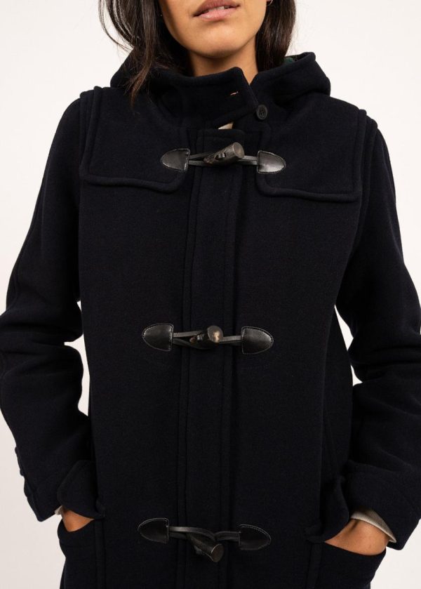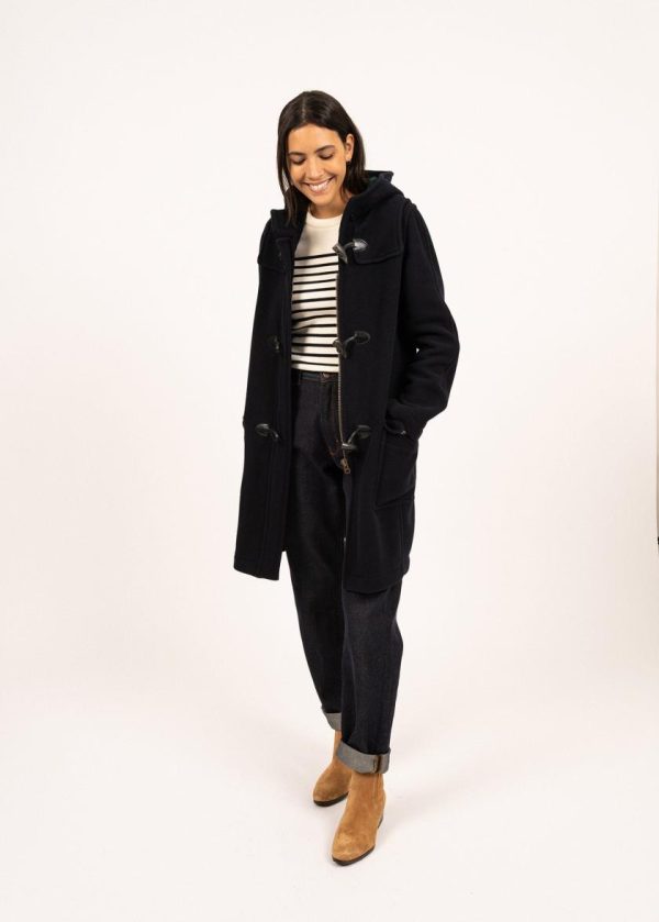 Manteau iconique des marins de la Royal Navy (la marine anglaise), le duffle-coat est un manteau en drap de laine, aux origines utilitaires. Confectionné dans un drap de laine épais et chaud, le modèle Arctique est un duffle-coat pour femme, à l’allure élégante et intemporelle. On aime ses deux grandes poches à l’avant, idéales pour y mettre clés, portable et autres objets, ou simplement s’y réchauffer les mains en hiver. Sur le devant, sa fermeture mêlant zip et brandebourgs en corne et cuir allient praticité de la modernité et authenticité de la tradition.- Duffle-coat