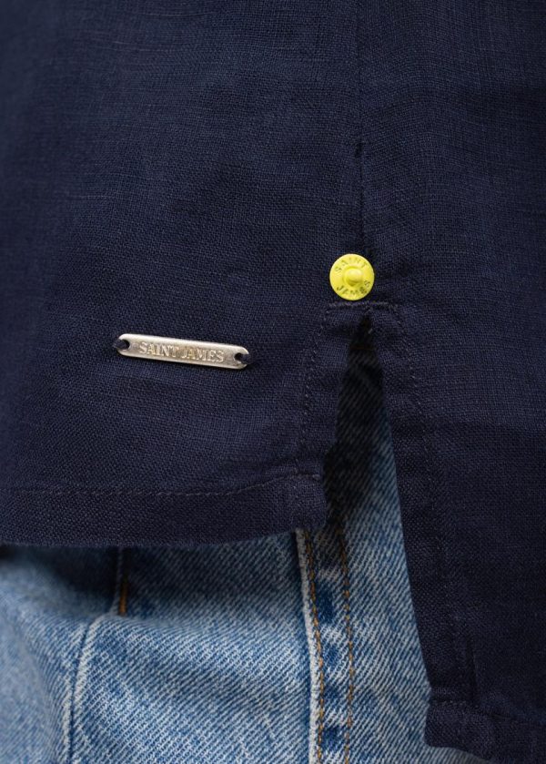 Fabriquée en gaze de lin, plus léger que le lin traditionnel, cette chemise est idéale pour la belle saison. On aime ses manches 3/4, ses poches plaquées sur la poitrine, ses fentes sur les côtés ainsi que son tissage aéré. Petit détail fantaisie : des rivets coloris « lime » sur chaque côté.