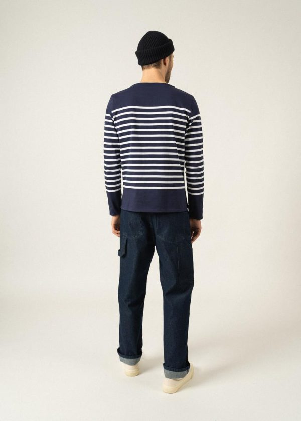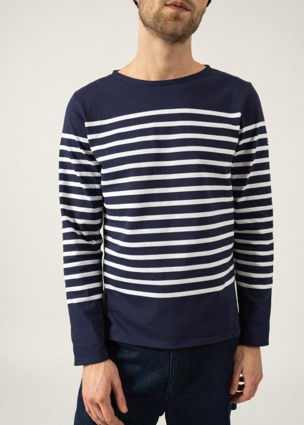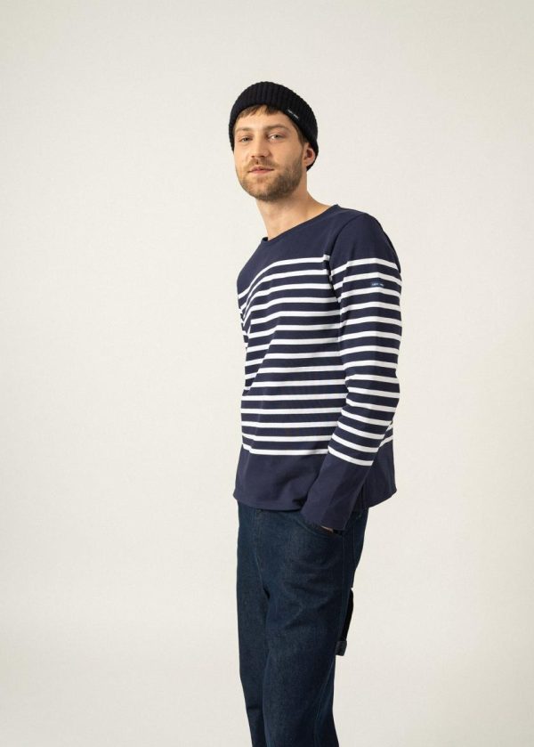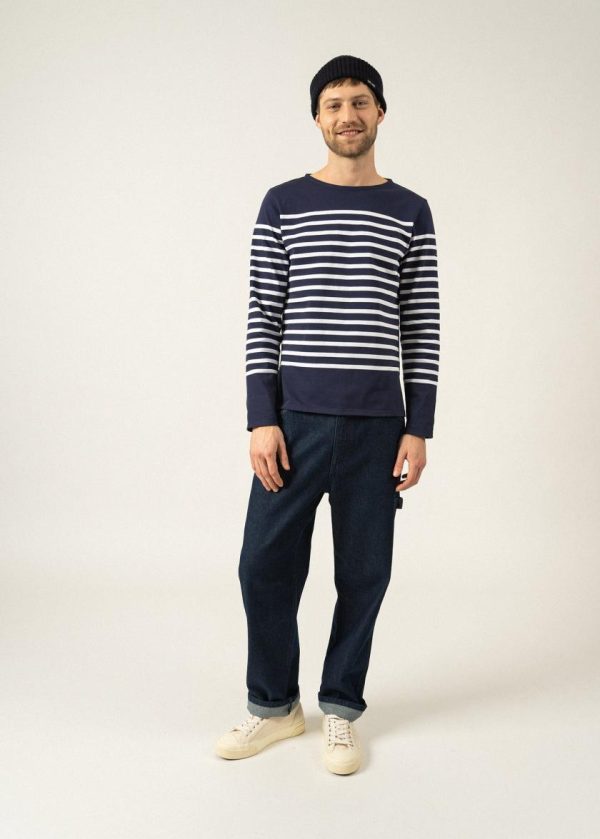 Intemporel, le modèle Naval reprend les codes de la marinière emblématique : rayures en empiècement d’un bleu « gitane » sur fond blanc, encolure « esprit bateau » et fentes côté. Elle est ici twistée par une rayure rouge contrastée, qui apporte dynamisme et originalité à la pièce.- Marinière
