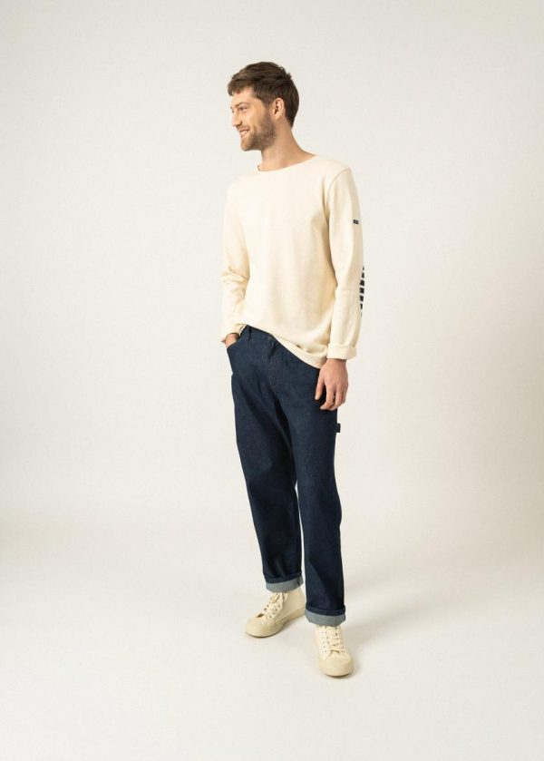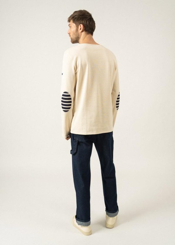 Marinières | Marinière Iconique Unie à Coudières Rayées En Jersey De Coton Lourd ECRU/NAVY/ECRU | Saint James Homme