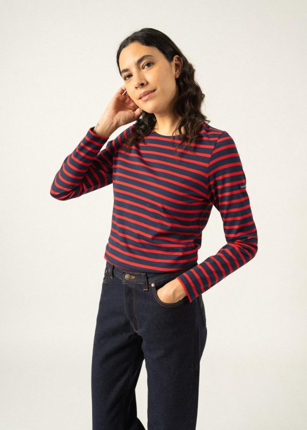 Marinières | Marinière Minquidame Coupe Droite, En Coton Léger MARINE/TULIPE | Saint James Femme