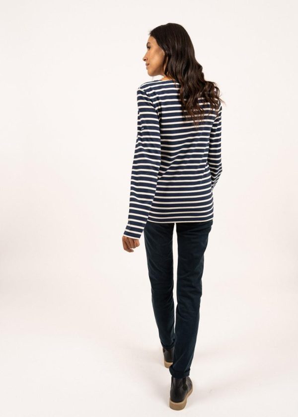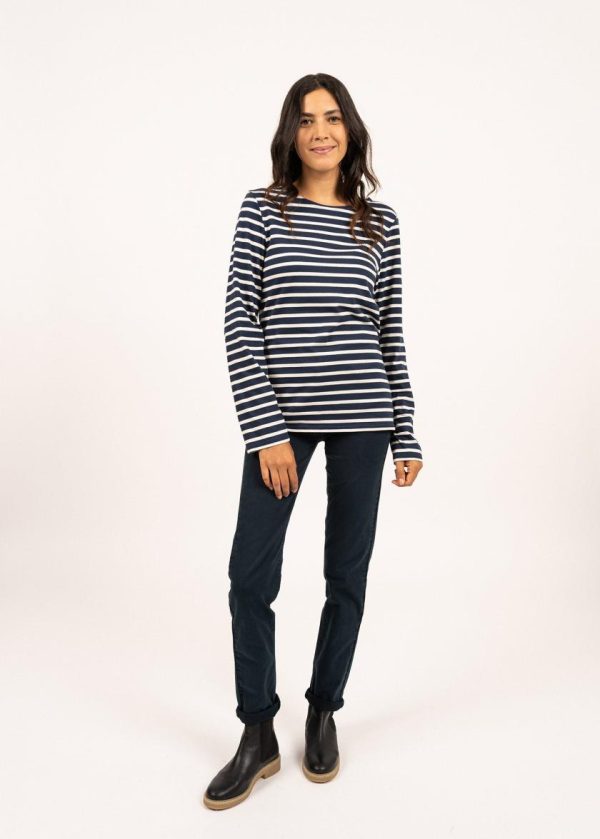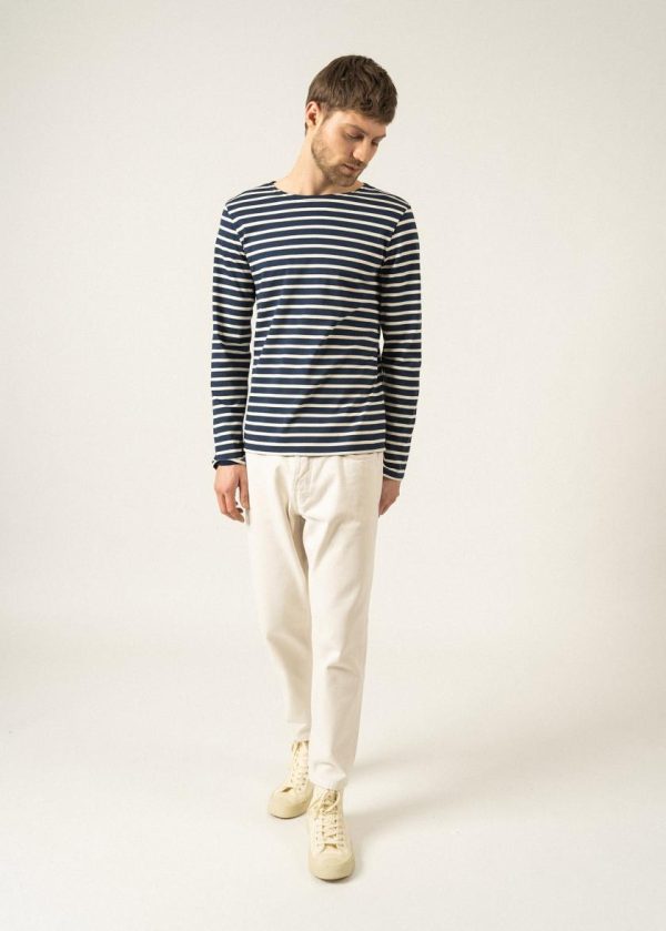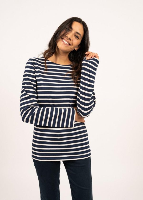 Intemporelle, graphique et décontractée, la marinière signe un état d’esprit, un art de vivre à la française. Léger, le modèle Minquiers moderne se transpose à différents styles au rythme des saisons.- Marinière