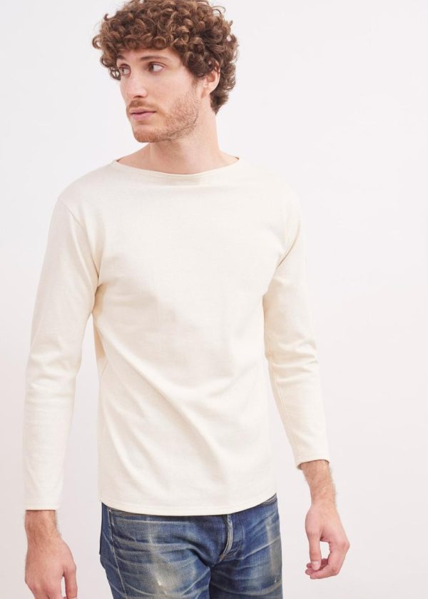 Marinières | T-shirt Marin Guildo Col Bateau, En Coton épais ECRU | Saint James Femme/Homme