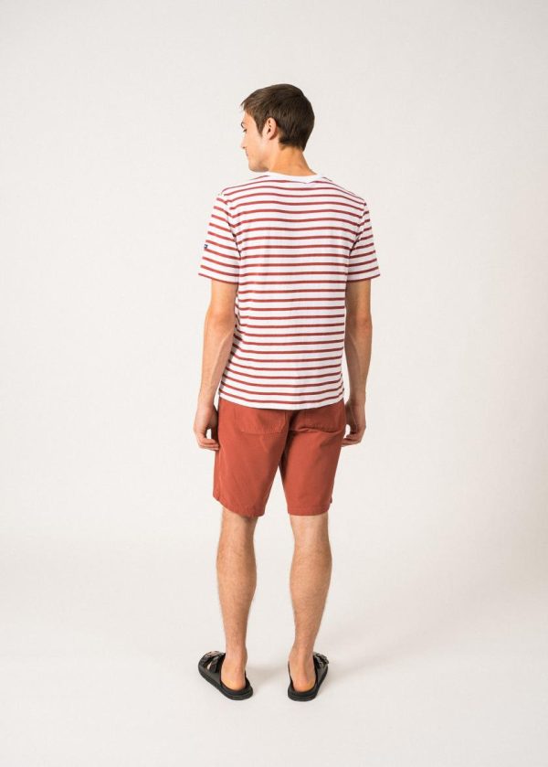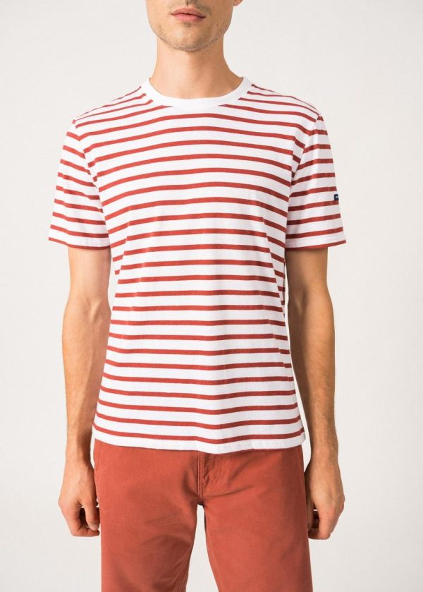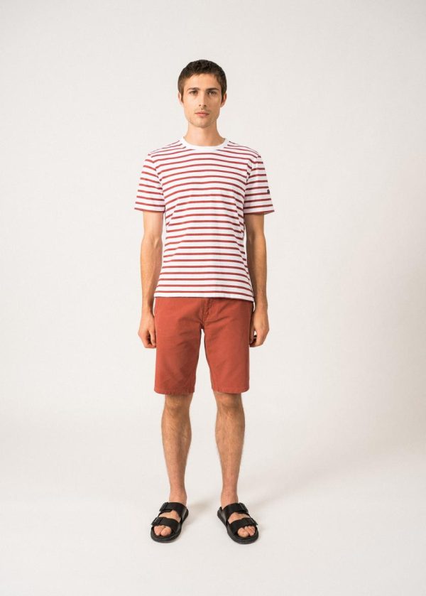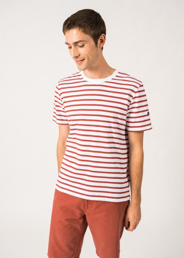 Marinières | T-shirt Marinière Plouider à Manches Courtes, En Coton Léger NEIGE/TERRACOTA | Saint James Homme