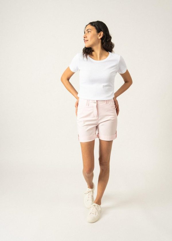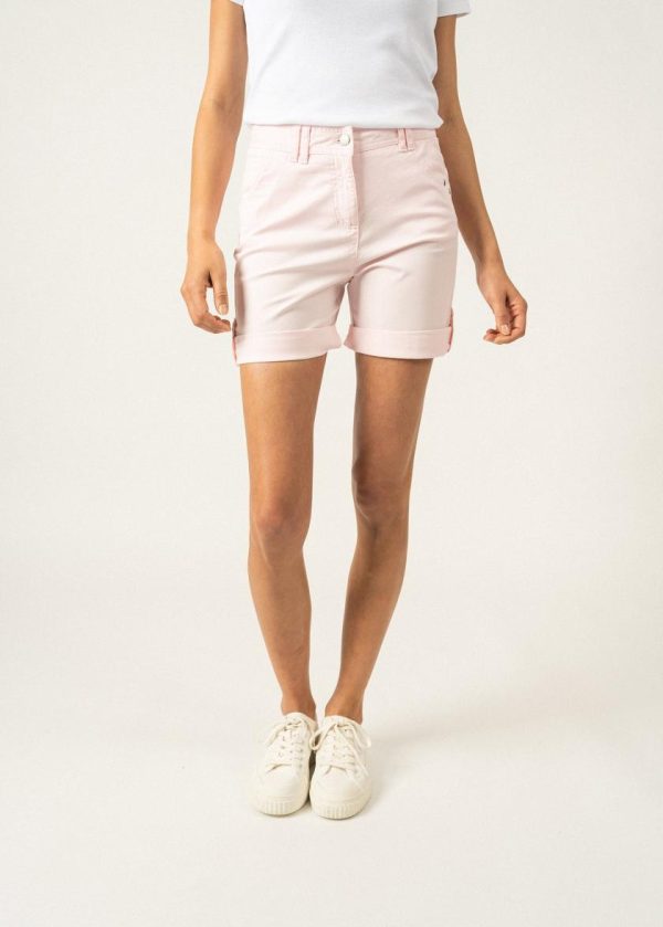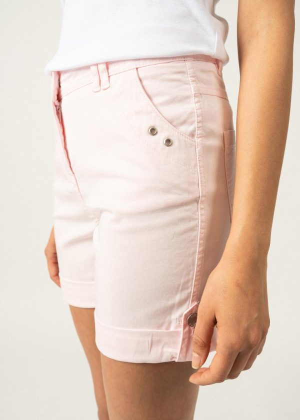 Bermuda en gabardine. Poches italiennes et poches plaquées au dos. Découpes fantaisie. Patte de réglage boutonnée en bas de jambes pour transformer le bermuda en short. Double passants de ceinture. Œillets décoratifs sur les poches.- Bermuda