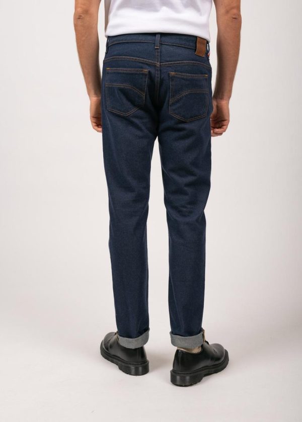 Alphonse Mérinos s’inspire d’un modèle classique d’Atelier Tuffery, spécialiste du denim, mais se distingue par sa composition : un denim mêlant coton et laine Mérinos d’Arles. Sa coupe droite classique en fait un jean facile à porter au quotidien, intemporel.- Jean homme en collaboration avec Tuffery