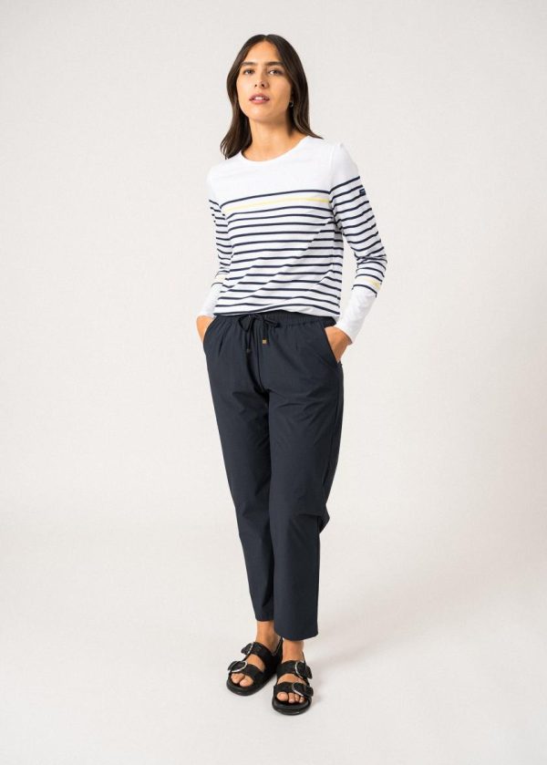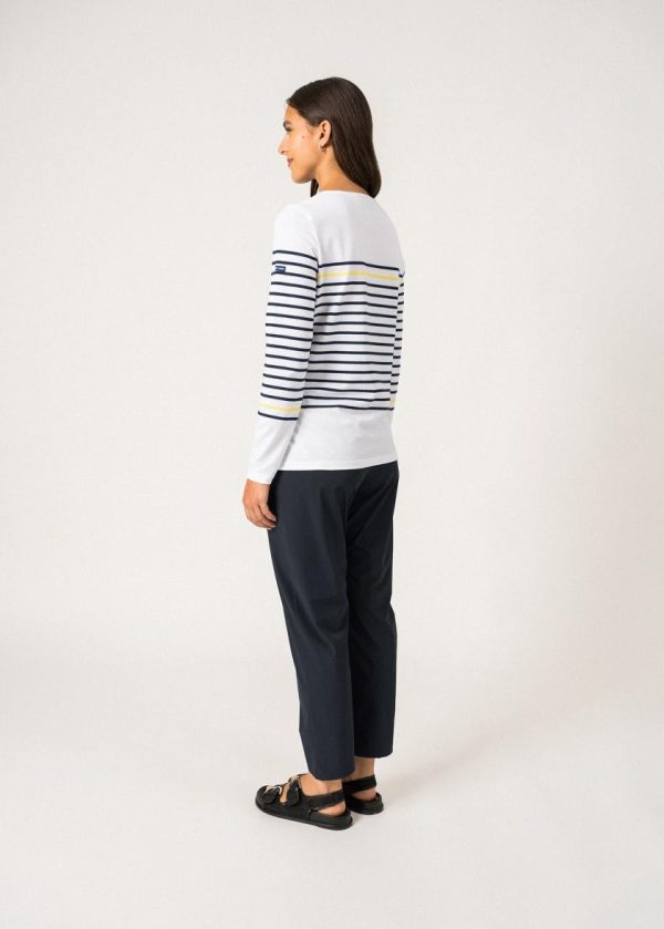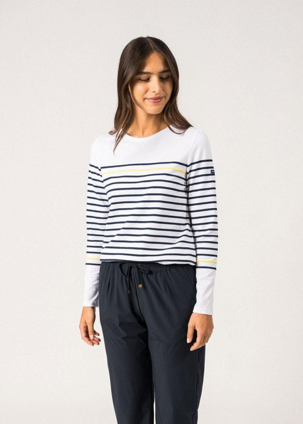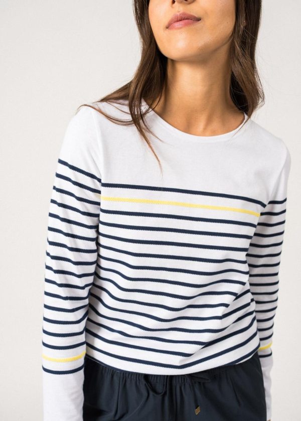 Le t-shirt Etel est un t-shirt rayé en coton, confectionné dans nos Ateliers, à Saint-James. Sur la poitrine et en bas de manches, une rayure contrastée rouge rappelle notre iconique modèle Naval. Une pièce à l’esprit marin, à associer à un jean, un short ou une jupe en jean.