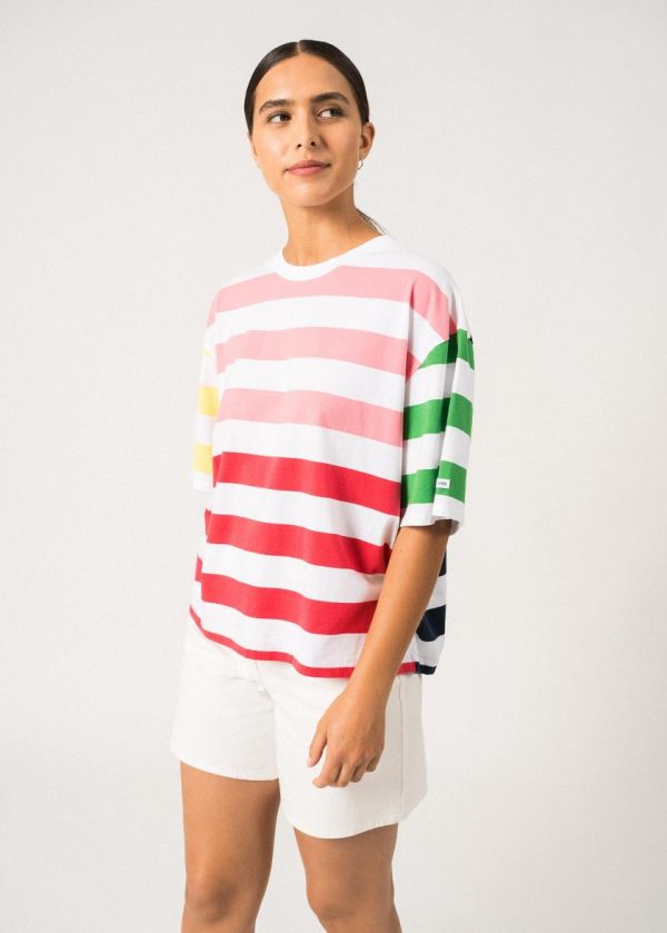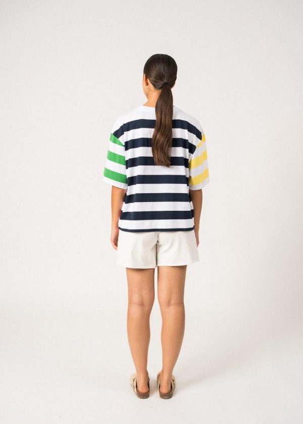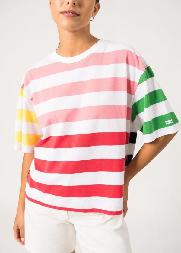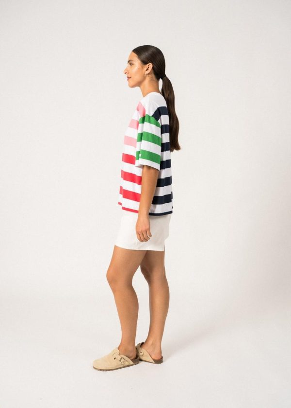 Les rayures se colorent et s’amusent avec le t-shirt Fiona ! Traitées en mode color block, elles apportent dynamise et originalité au basique t-shirt en coton, pour apporter une touche colorée dans vos tenues d’été. Au dos, nos iconiques rayures marine se retrouvent, et jouent l’asymétrie avec le devant de la pièce.- Tee-shirt en jersey