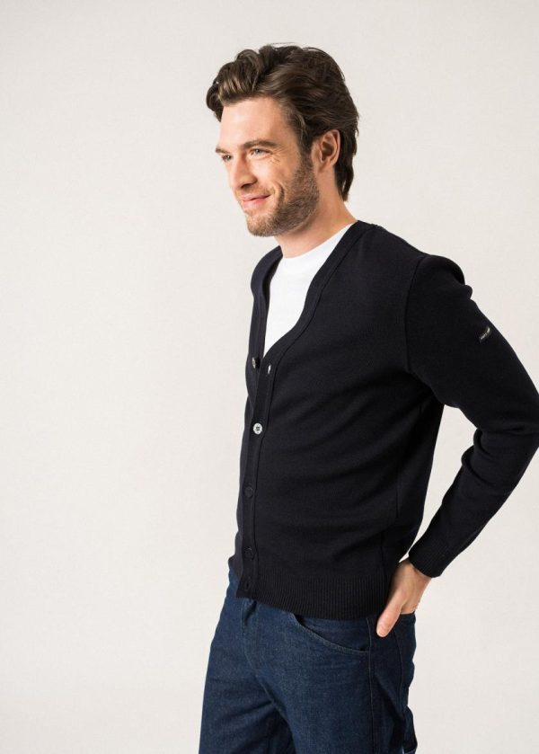 Inspiré par l’équipage SAINT JAMES, ce cardigan est un hommage à notre savoir-faire. Tricoté en côte 1×1, en laine dans nos Ateliers, il démontre la qualité de nos techniques de tricotage. Aux manches, des coudières tricotées regroupent tout le savoir-faire SAINT JAMES : un motif directement tricoté dans la manche, réalisé grâce à nos programmeurs, nécessitant l’intervention de nos raccoutreuses pour un fini parfait, et s’inspirant de celui des bobines de laine, indissociables de SAINT JAMES. Un produit iconique, empreint de savoir-faire, de sens et de partage.- Gilet iconique SAINT JAMES