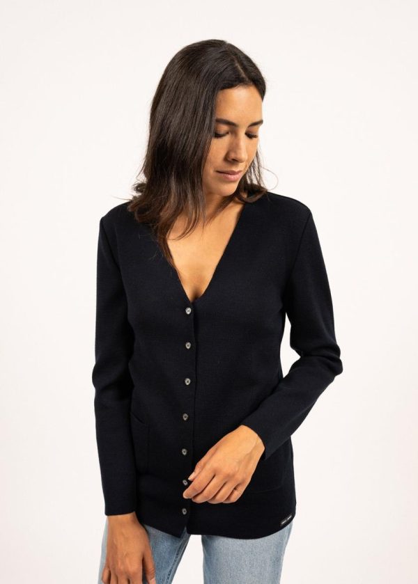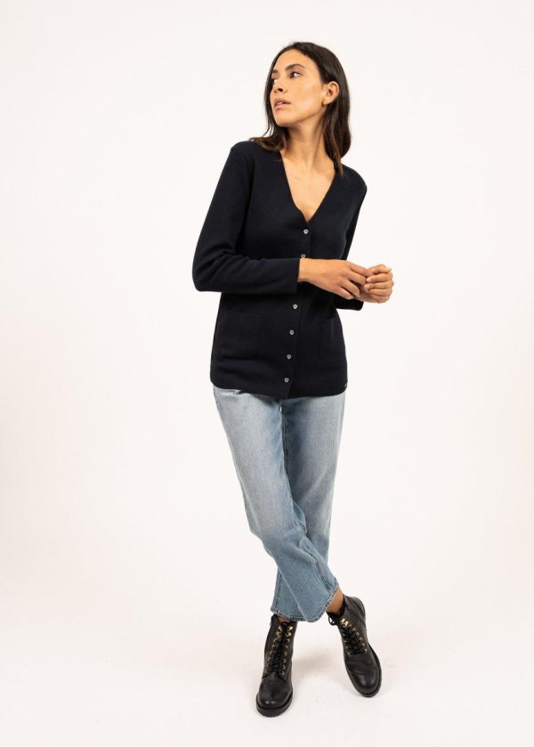 Incontournables, les gilets en maille fine se déclinent au sein de la ligne basique : Brevands avec un col V, et Blainville, un modèle plus long, également col V et pourvu de poches. La gamme est ornée de petits boutons en métal dont le cerclage siglé se colore en ton sur ton.- Gilet