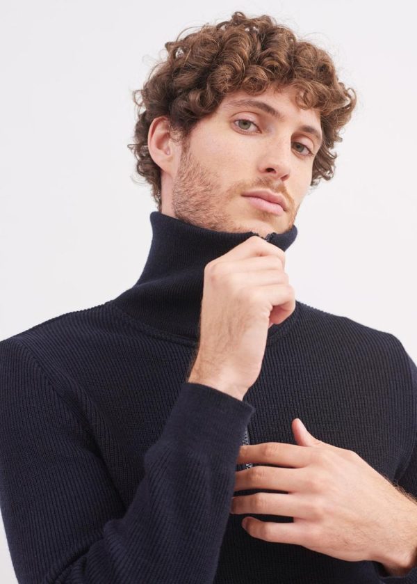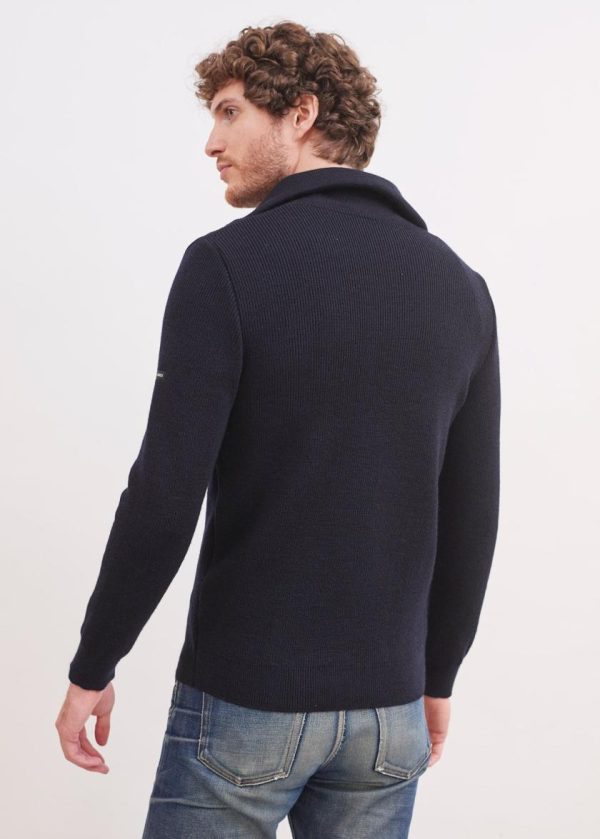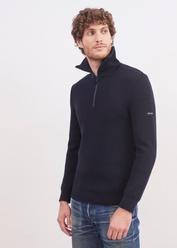 Facilement adopté par les marins pêcheurs parce qu’il protège des vents froids, le pull col camionneur a une place légitime dans les collections Saint James. Tricoté en côte anglaise, le modèle Cotentin est assez souple, ce qui facilite le mouvement.- Pull