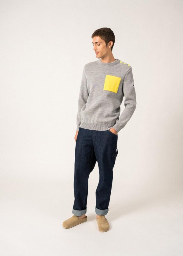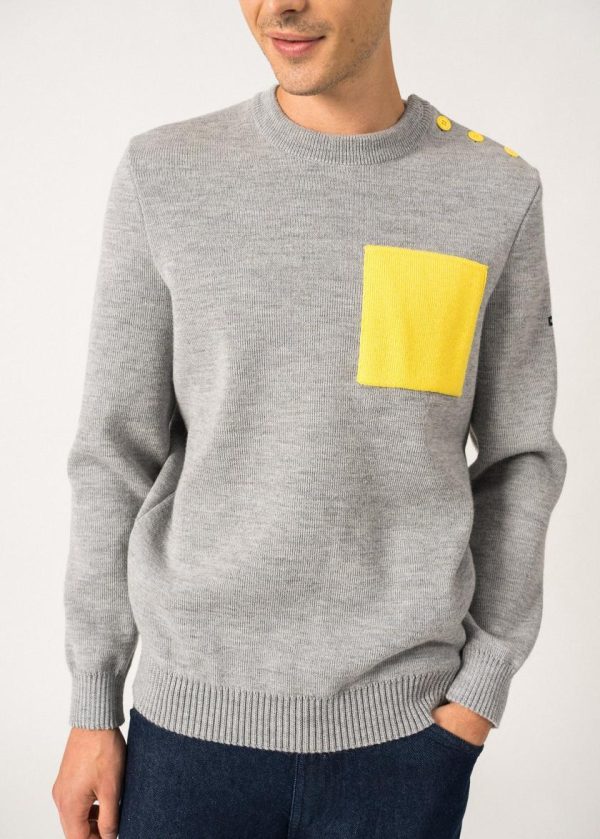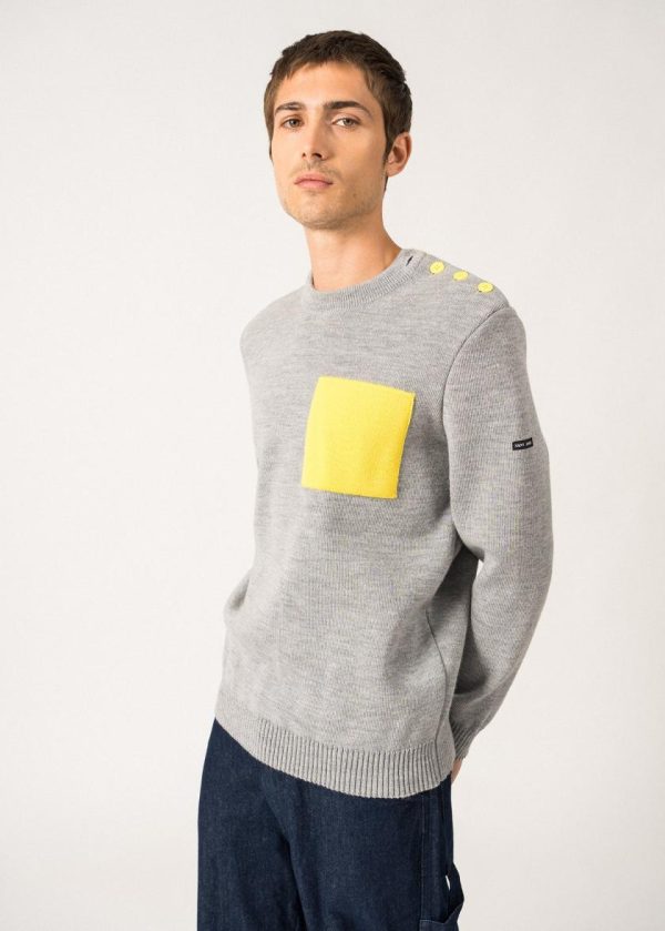 Pulls Marins | Pull Marin Cancale à Poche Contrastée GRIS CLAIR/ACIDULE | Saint James Homme