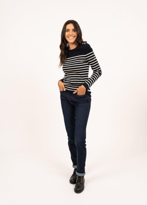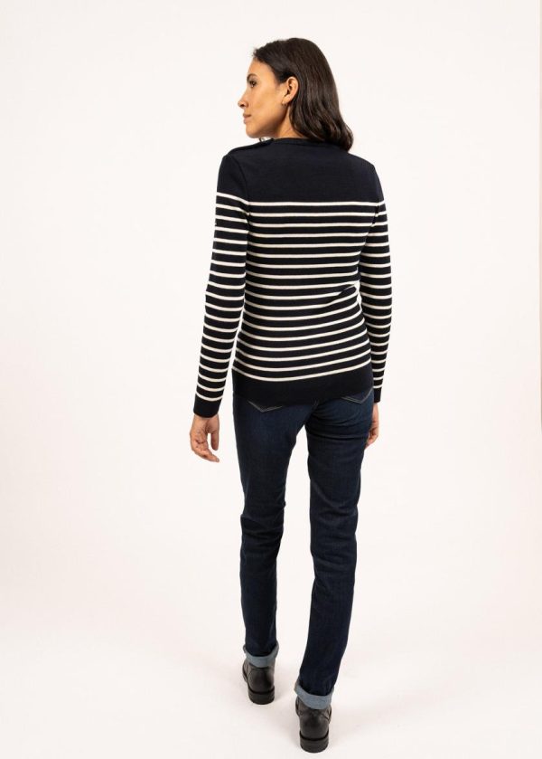 Pulls Marins | Pull Marin Rayé Marée En Laine Mérinos NAVY/ECUME | Saint James Femme