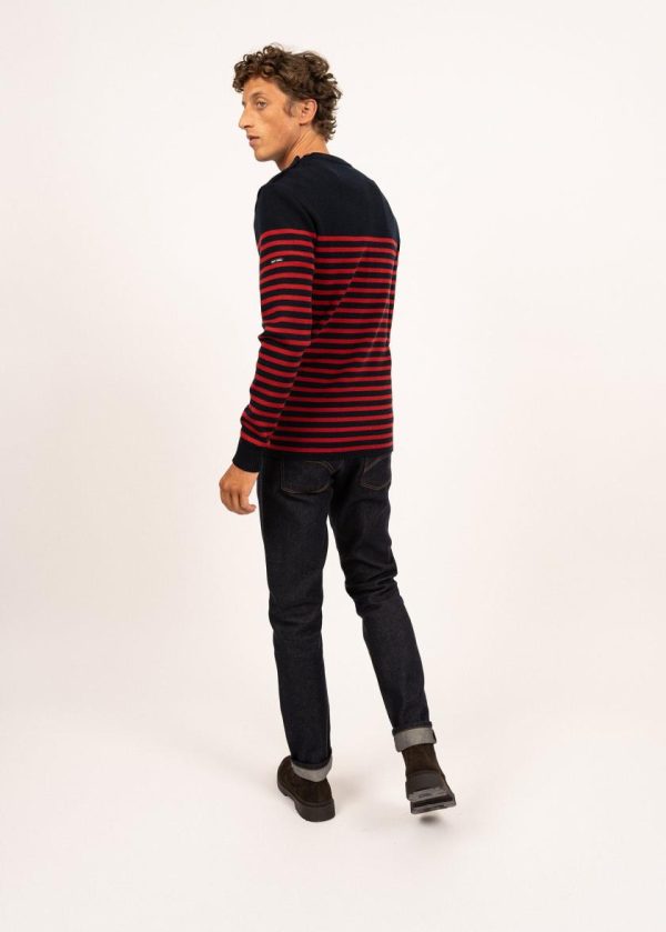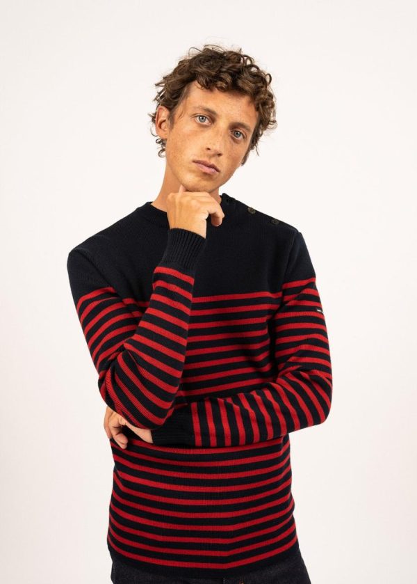 Modèle idéal de ceux aimant le charme du pull marin authentique mais recherchant plus de confort, le pull marin Rochefort est à la fois traditionnel et confortable. Confectionné en laine mérinos, il est doux, chaud, mais également respirant. Sa coupe reprend les codes du pull marin classique : un col rond remaillé, un boutonnage à l’épaule pour facilité l’enfilage, un tricotage en côte 1×1 et une longueur permettant de protéger le dos, même lorsque l’on se baisse.Décliné dans une version rayée, il apportera une touche marine supplémentaire à votre look, adoucie par son empiècement uni en haut de corps.- Pull marin
