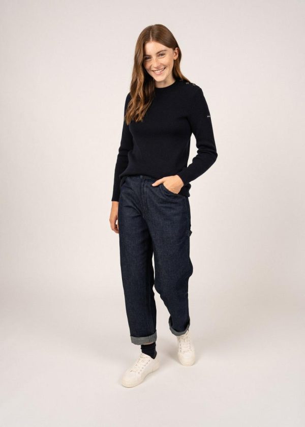 Version féminine de notre intemporel Rochefort, ce pull marin en laine est tricoté dans nos Ateliers, à Saint-James. Pour plus de confort, il reprend le fit de notre pull Brégançon, dans la laine douce du Rochefort. A l’épaule, notre classique boutonnage se pare de boutons en résine imitation corne.