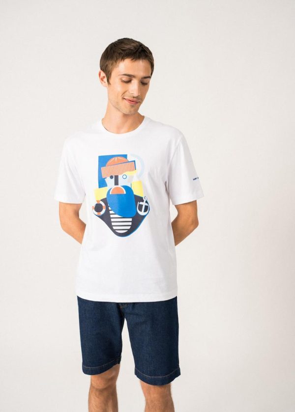 Confectionné en coton pima, ce t-shirt est doux et confortable. On aime son motif à effet géométrique représentant un marin, qui rend parfaitement honneur à notre héritage tout en lui apportant une touche de modernité.- Tee-shirt en jersey