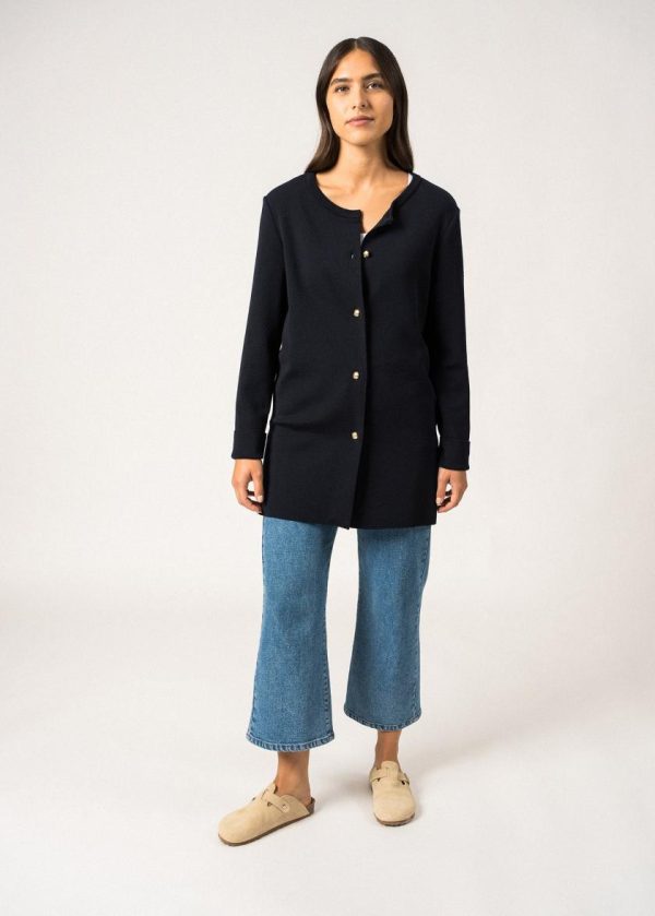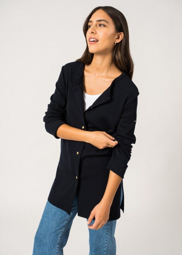Le gilet Brignolles est un gilet en laine, confectionné dans nos Ateliers normands. Tricoté en laine douce et chaude, il est idéal pour démarrer la saison en douceur. On aime sa longueur, qui le rend parfait sur un pantalon, une robe ou une jupe. En détail, de jolis boutons blason dorés apportent une touche de lumière et de féminité.- Veste longue